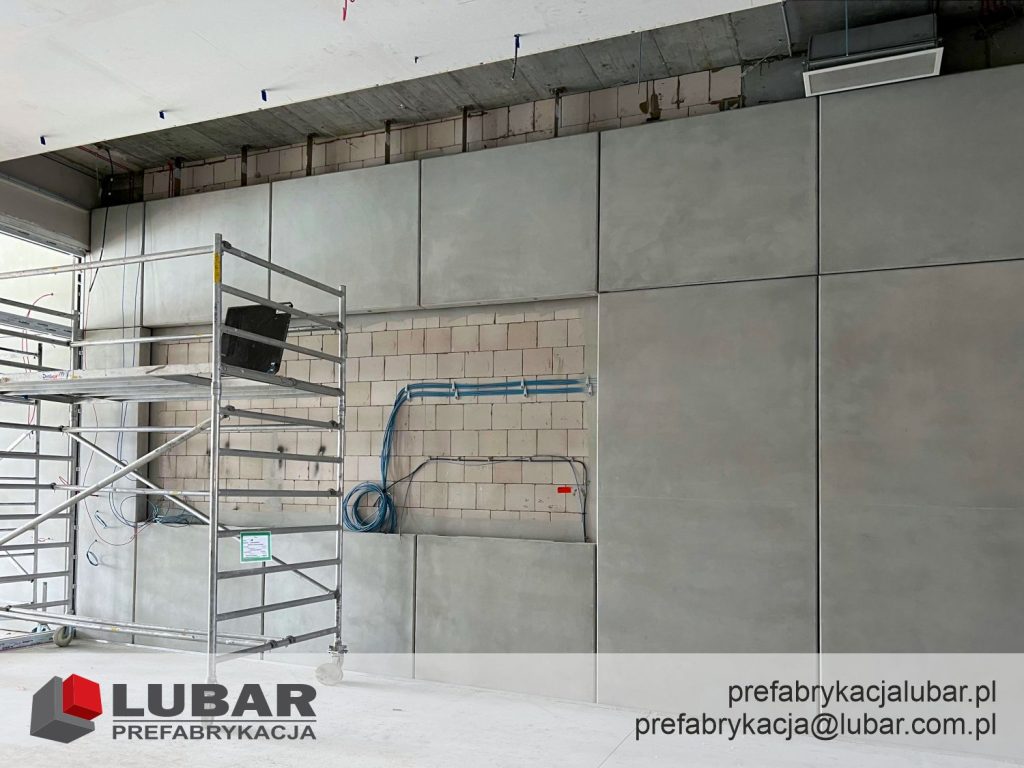 Beton architektoniczny w nowoczesnym budownictwie nie jest nowością, ale dobrze i profesjonalnie wykonany – sztuką. Nadaje wnętrzu niepowtarzalny charakter i nowoczesny styl. Dowolność form, kształtów, a nawet kolorów pozwala projektować indywidualne, ciekawe a co za tym idzie wyjątkowe formy. Przykładem jest ściana montowana wewnątrz pomieszczenia z wykorzystaniem specjalistycznego sprzętu oraz wykwalifikowanych montażystów